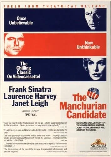 On this day in 1962, The Manchurian Candidate, directed by John Frankenheimer, and starring Frank Sinatra, Laurence Harvey, Angela Lansbury, and Janet Leigh, was released in theatres. The film was based on the novel by Richard Condon, published in 1959 following the Korean War and released just as the Viet Nam War was starting up. The story has clever insights on the nature of the Capitalist/Communist struggle for power in the midst of the cold war. It also introduces a scary, fascinating, and iconic profile of political games played using brainwashed/hypnotized soldiers. The remake of the film came out in 2004, starring Denzel Washington, Meryl Streep, Liev Schreiber, and John Voight.